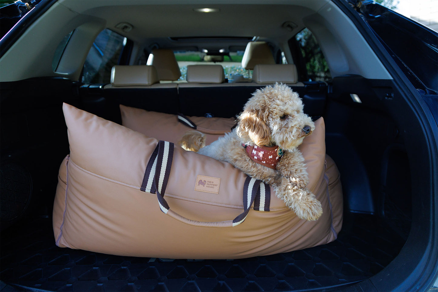 A continuation of our ever-popular Boujee Booster, The Big Boujee is the quintessential travel item for big pets, or many smaller pets on the move! Whether a short trip to the dog park or a long haul through the countryside, The Big Boujee ensures your hound is safe, snug and secure.